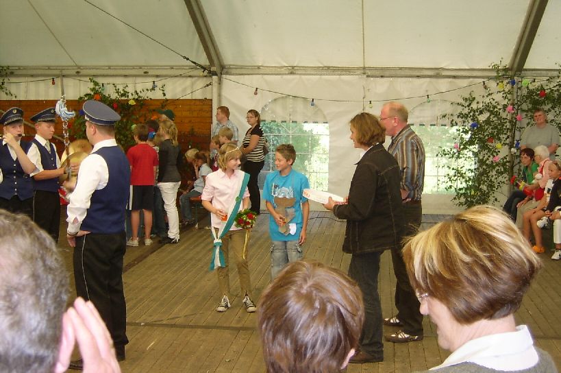 Um 17.30 Uhr war es soweit. Die zwölfjährige Isabel Hagemann schoss beim Kinderschützenfest des Schützenvereins „Horst und Wall“ am Samstag den Vogel von der Stange und ist damit neue Königin. Als neuer Kinderkönig regiert mit ihr Kevin Zurkuhl, der ebenfalls zwölf Jahre alt ist.